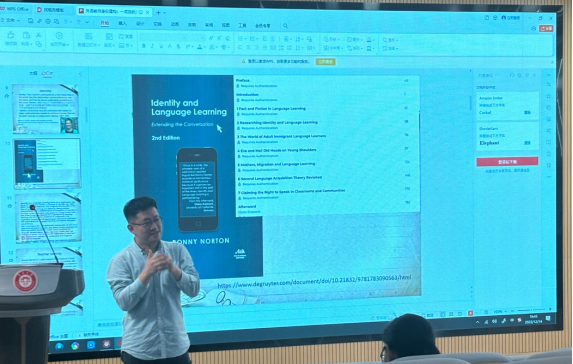 在讲座中,方帆从身份认同理论出发,通过自我民族志的方法,描绘和反思自身的职业轨迹,在讲述自身成长经历的同时,方帆教授结合理论和自身实践阐述了教师身份、超语实践等众多研究热点,展现了自身在学术成长道路上清晰的目标和开阔的国际视野,并为教师发展提出了建设性意见和建议。最后,方帆教授还提出,母语教师和非母语教师都有自身优势,教师要保持积极开放的心态,规划自己的职业生涯,重构自身从纯粹的英语语言类教师到教研人员的身份转变。在问答互动环节,方帆教授一一回答了在座师生的提问,分享了自己对网络民族志,教师角色与身份、学术创新等的看法。此外,方帆教授呼吁教师要关注英语教学中语音的多样性,培养学生的全球英语意识。