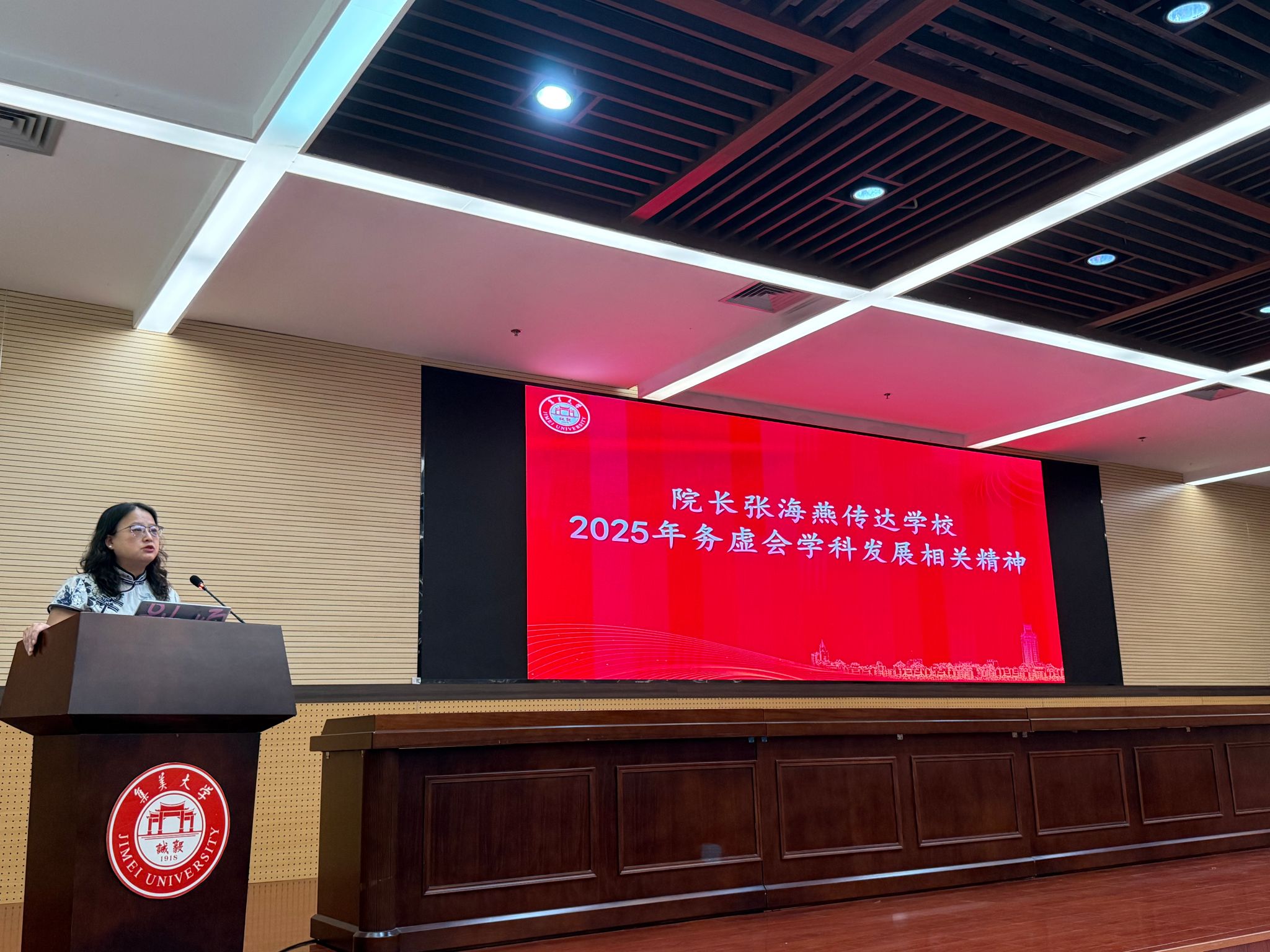 院长张海燕作《聚焦十五五,冲刺120——学校务虚会精神传达与外国语学院发展目标定位》报告,明确学院十五五期间关键办学指标和发展定位。在充分肯定学院十四五期间取得的优异成绩同时,也指出了学院发展存在的不足,鼓励每位教师都要制定自己的小目标,为学院的大目标实现做出贡献。学院还应积极响应学校构建“4 + 2”学科群发展思路,发挥学院语言服务功能和区域国别研究优势,助力学校学科建设高质量发展,培养国家需要的国际化外语复合型人才。