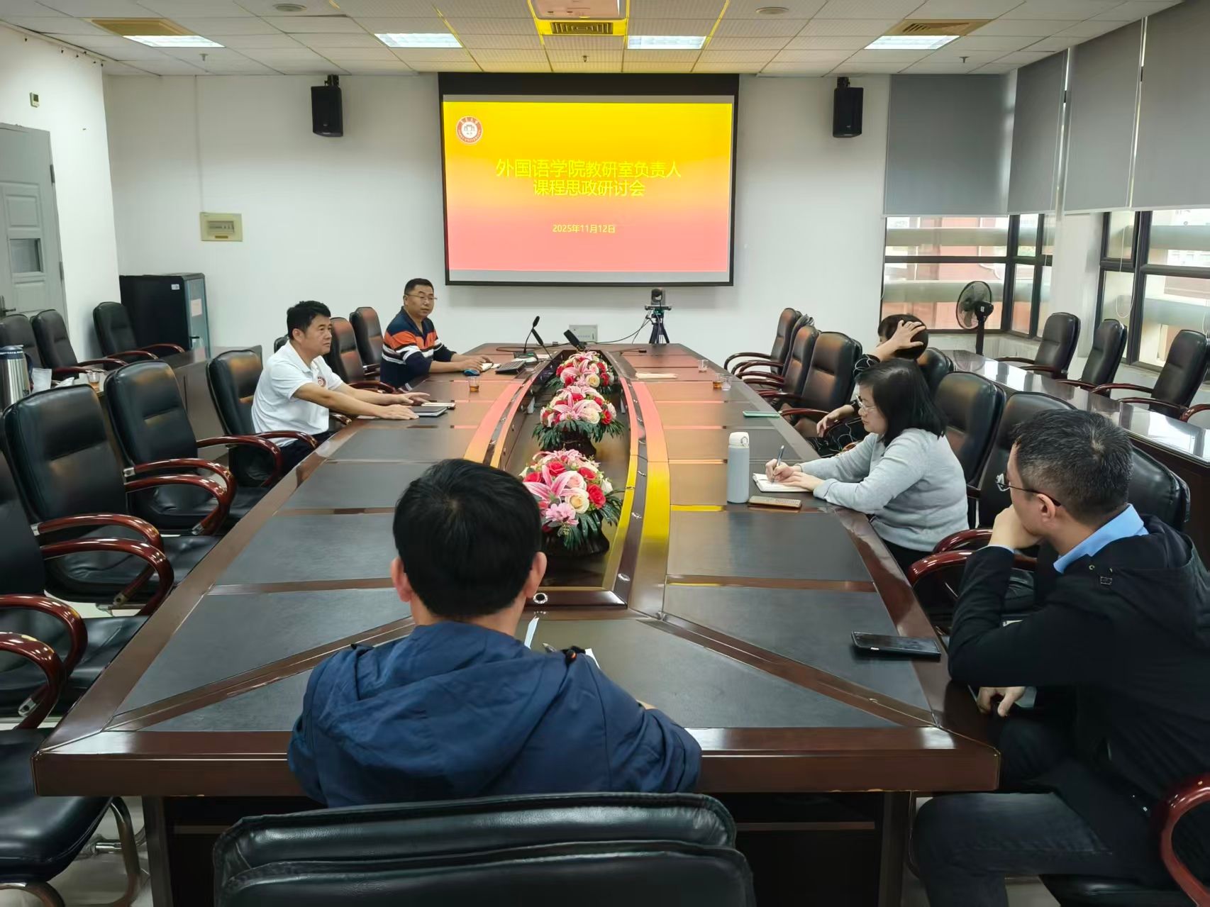 11月12日,外国语学院在庄汉水515会议室召开教研室负责人课程思政研讨会。本次会议由韩存新副院长主持,院党委书记黄建宇及各系部主任参会。