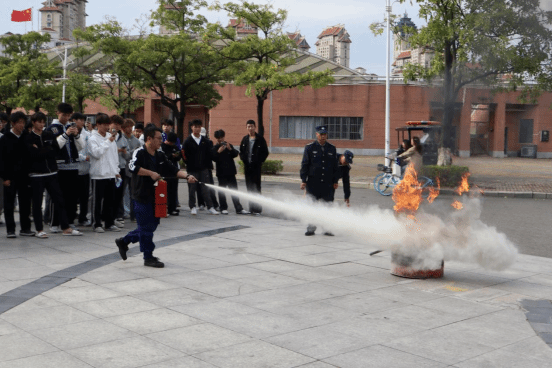 演练过程中,学生按照指定路线快速、有序地从宿舍区撤离到光前体育馆北侧空地区域。撤离结束后,保卫处消防科老师对演练情况进行总结点评,肯定了学院演练组织的规范性和学生表现的积极性,认为此次演练流程清晰、分工明确、效果显著。同时,他结合近期典型校园火灾案例,再次强调了消防安全的重要性,现场演示了干粉灭火器“提、拔、握、压”的操作要领,并邀请学生代表上台实操练习,手把手指导学生掌握灭火技能。