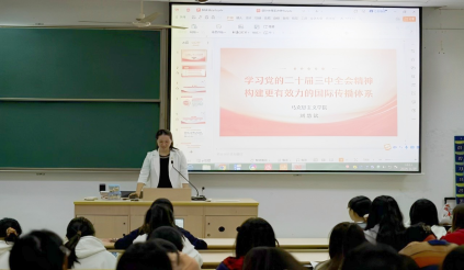 为深入学习贯彻党的二十届三中全会精神,提高学生的思想政治觉悟,近日外国语学院邀请马克思主义学院刘慧钦作“学习党的二十届三中全会精神,构建更有效力的国际传播体系”讲座,学院入党积极分子及发展对象参加。