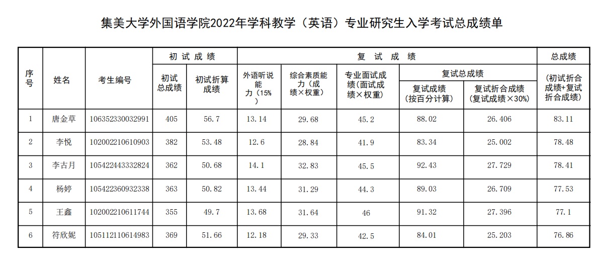 下一篇:外国语学院2022年硕士研究生招生调剂复试人员名单
