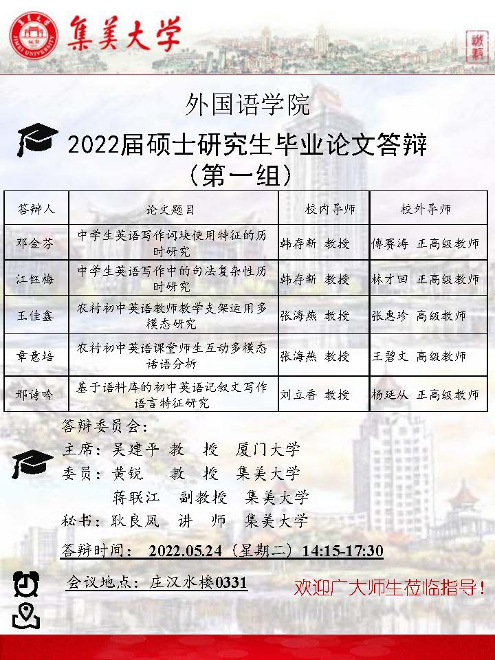 上一篇:外国语学院2022届硕士研究生毕业论文答辩公告(一)