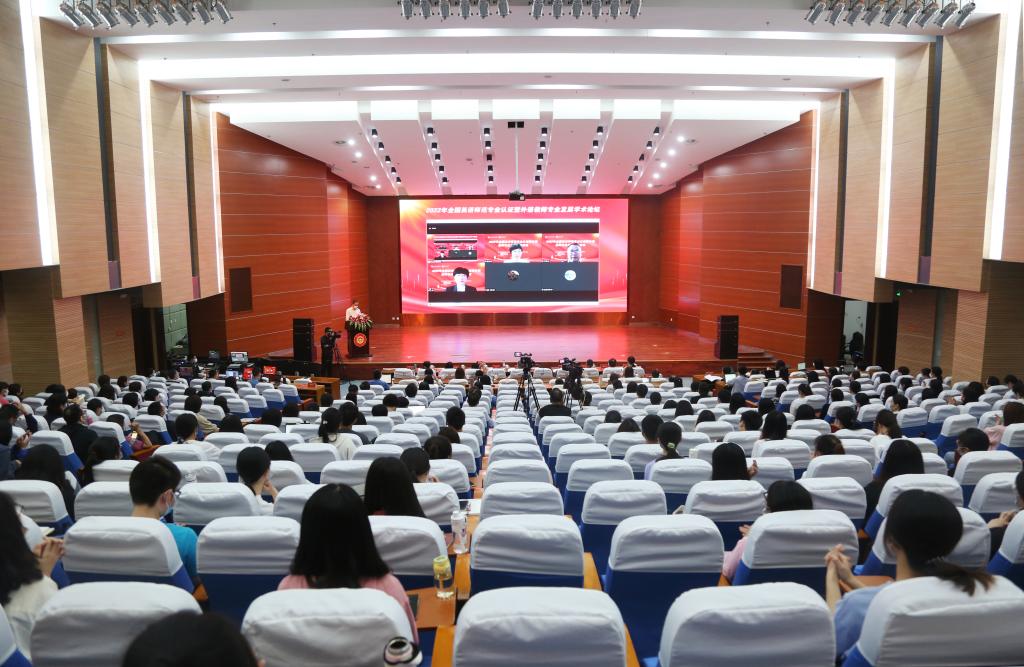 5月21日,由教育部高等学校外国语言文学类专业教学指导委员会英语专业教学指导分委员会、福建省外国语文学会、外语教学与研究出版社主办,集美大学承办的“2022年全国英语师范专业认证暨外语教师专业发展学术论坛”在集美大学召开。福建省外国语文学会会长杨信彰教授,闽南师范大学副校长张龙海教授,集美大学外国语学院黄锐教授、张海燕教授联合主持论坛。论坛通过线上线下相结合方式举行,来自全国各地200多所学校6000多名专家学者线上参会,集美大学外国语学院全院师生员工和部分福建省内兄弟院校专家线下参会,共同探讨外语基础教育高质量发展路径。