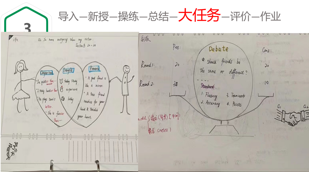 讲座中,陈老师结合自身丰富的实践经验,详细介绍了片段教学的具体要求、完整流程以及时间分配原则。针对片段教学各个环节的重难点,陈老师结合自己为此次讲座专门录制的教学录像逐一讲解、分析并点评。在大任务设计环节中,陈老师层层剖析、娓娓道来,并分享了自己板书设计的手稿,使人耳目一新。