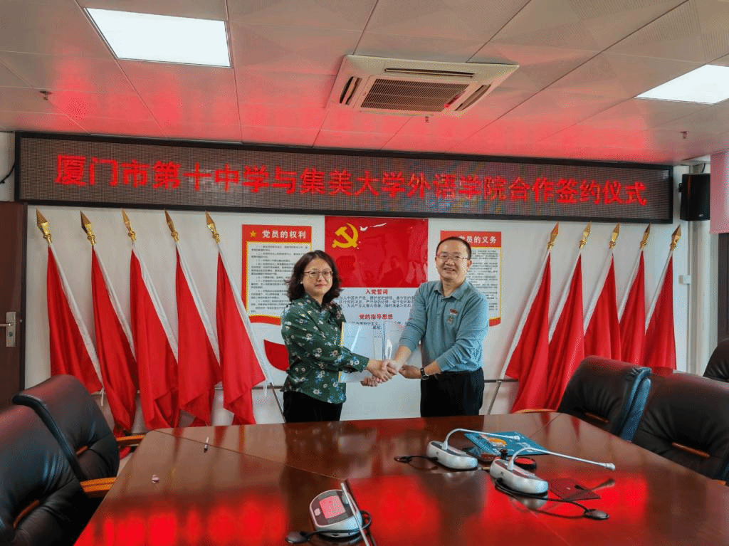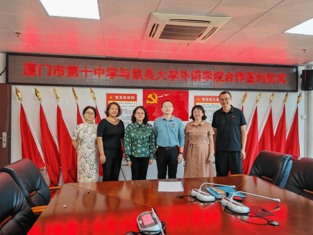 为加强与实践基地的联系﹑推进英语师范专业认证工作,外国语学院院长张海燕﹑团委书记姜如星、实习带队老师陈晓铃等一行于11月11日走访了厦门十中,与厦门十中校长迟建伟、副校长张秀红、教务科主任陈炎辉、我院校外硕导刘亚琳老师等进行座谈,并签署院校共建合作协议。